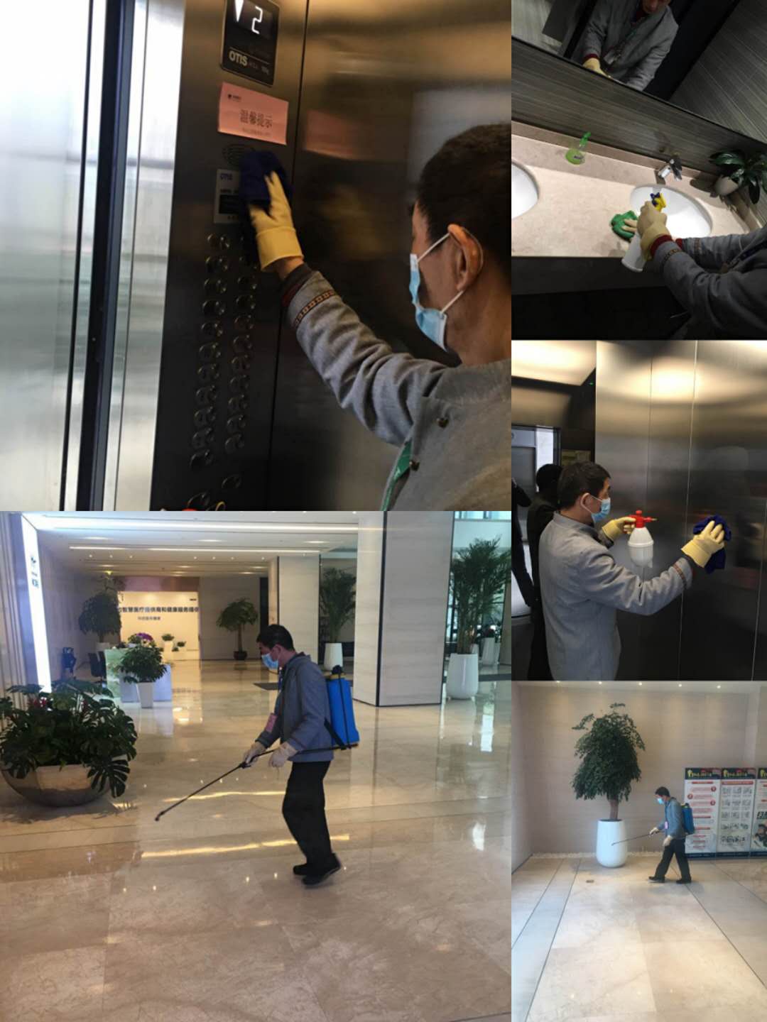 復工期間,和仁科技大廈公共區(qū)域(大堂、展廳、各樓層茶水間、樓道、地下車庫、電梯間等)進行噴灑消毒。針對門把手、開關(guān)、電梯按鍵等頻繁交叉使用區(qū)域加強消毒頻次。工作組建立全員晨檢、夕查機制篩查體溫,為員工配備醫(yī)用口罩、配置消毒液等公共應急物資,并設(shè)立醫(yī)用口罩集中回收點等,所有服務人員將全天佩戴口罩工作,建立疫情防控消殺管理日志。