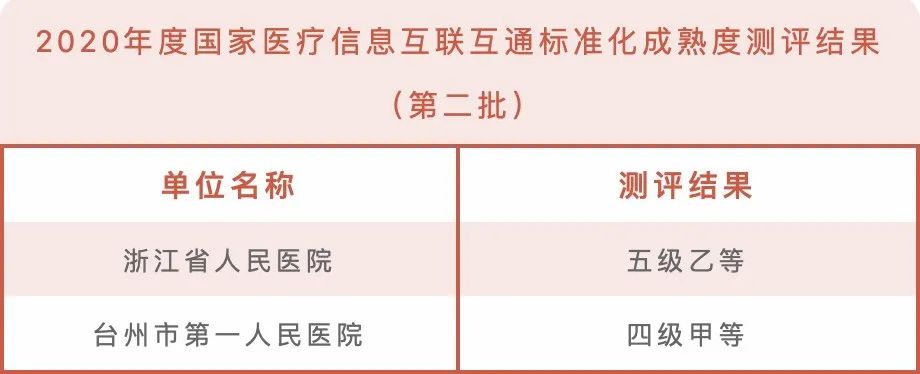 浙江和仁科技股份有限公司(以下簡稱“和仁科技”)客戶浙江省人民醫院順利通過五級乙等測評、臺州市第一人民醫院順利通過四級甲等測評。